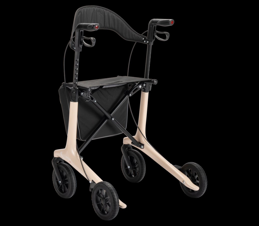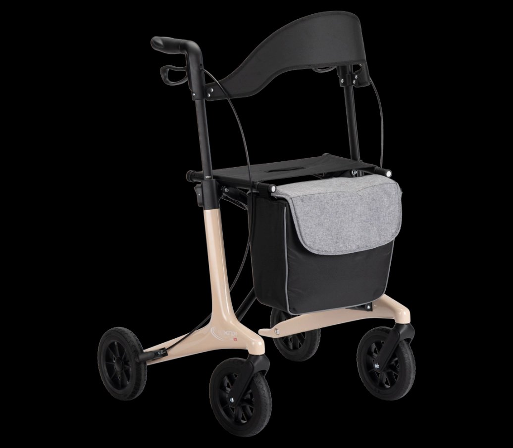 De MultiMotion Carbon rollator combineert een elegant design met ultiem gebruiksgemak. Dankzij het lichte carbon frame is hij bijzonder wendbaar en eenvoudig te hanteren. Standaard uitgerust met een afsluitbare boodschappentas, een comfortabele (afneembare) rugband en twee stoephulpen. De handgrepen zijn met een drukknop makkelijk in hoogte te verstellen. Opvouwen gaat eenvoudig door de zitting omhoog te trekken, waarbij de rollator eventueel is te vergrendelen in opgevouwen stand. De hoogwaardige afwerking en verfijnde details zorgen voor een luxe uitstraling, terwijl de softwielen optimaal rijcomfort garanderen.
