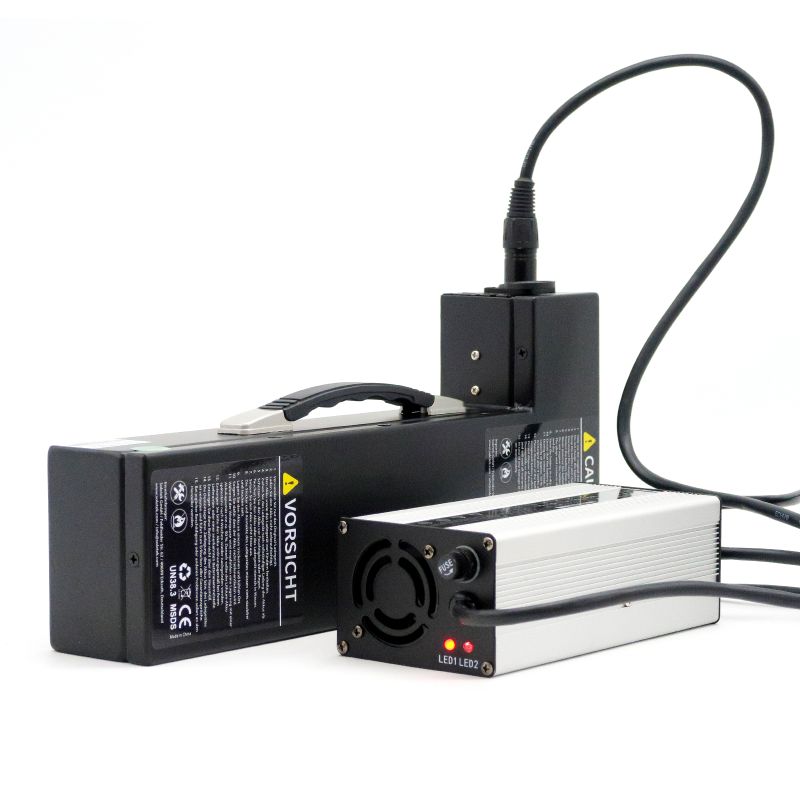 De onderhoudsvrije lithium-noodaccu (60 V / 5 Ah) is de ideale aanvulling op de standaard Rolektro-accu en past perfect bij verschillende modellen elektrische voertuigen.